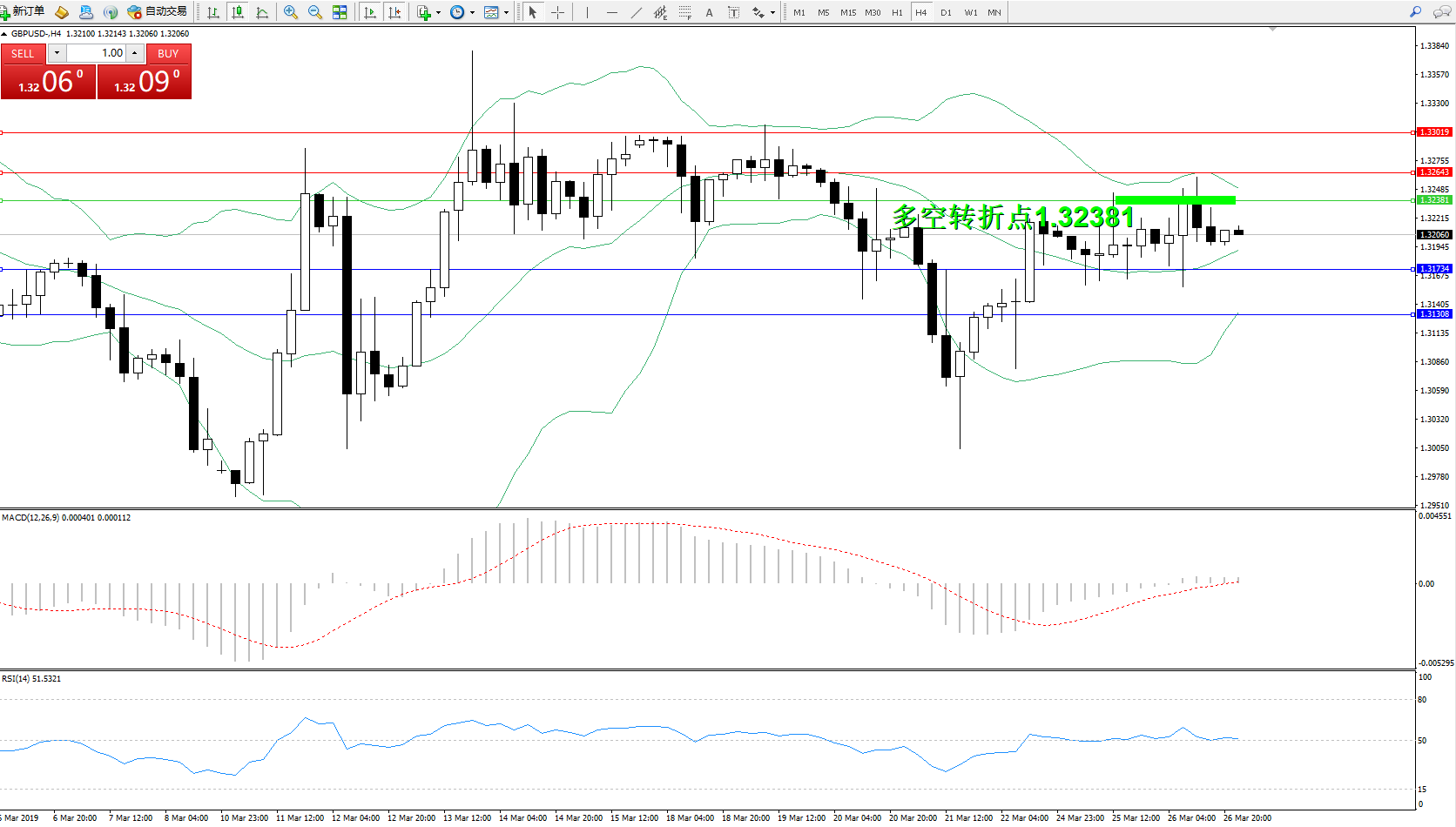 备选策略:1.32381上方看涨,目标1.32643、1.33019