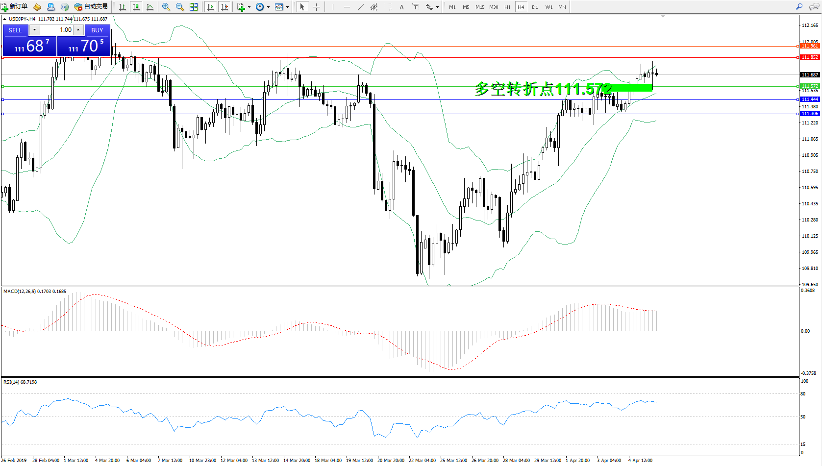 交易策略:111.572上方看涨,目标111.852、111.961