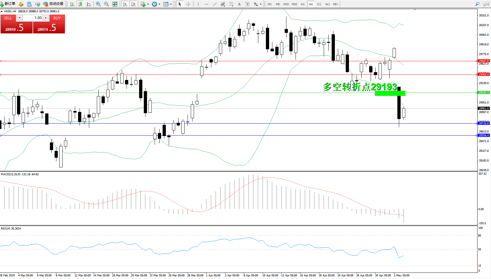 受国际方面的不确定性影响,节后港股大幅低开,恒生指数盘中一度跌破29000点,为329日以来首次,日内跌逾1000点,香港恒生指数收盘跌2.9%29209.82点,创超一个月新低。腾讯控股跌3.15%,小米集团跌6.78%。特朗普在周日下午的Twitter帖子中表示,目前价值2000亿美元的中国商品的10%关税将在周五上涨至25%。他还威胁要“在短期内”对另外3250亿美元的中国商品征收25%的税。中方表示将退出贸易谈判。市场情绪紧张,华尔街将开始大幅抛售。