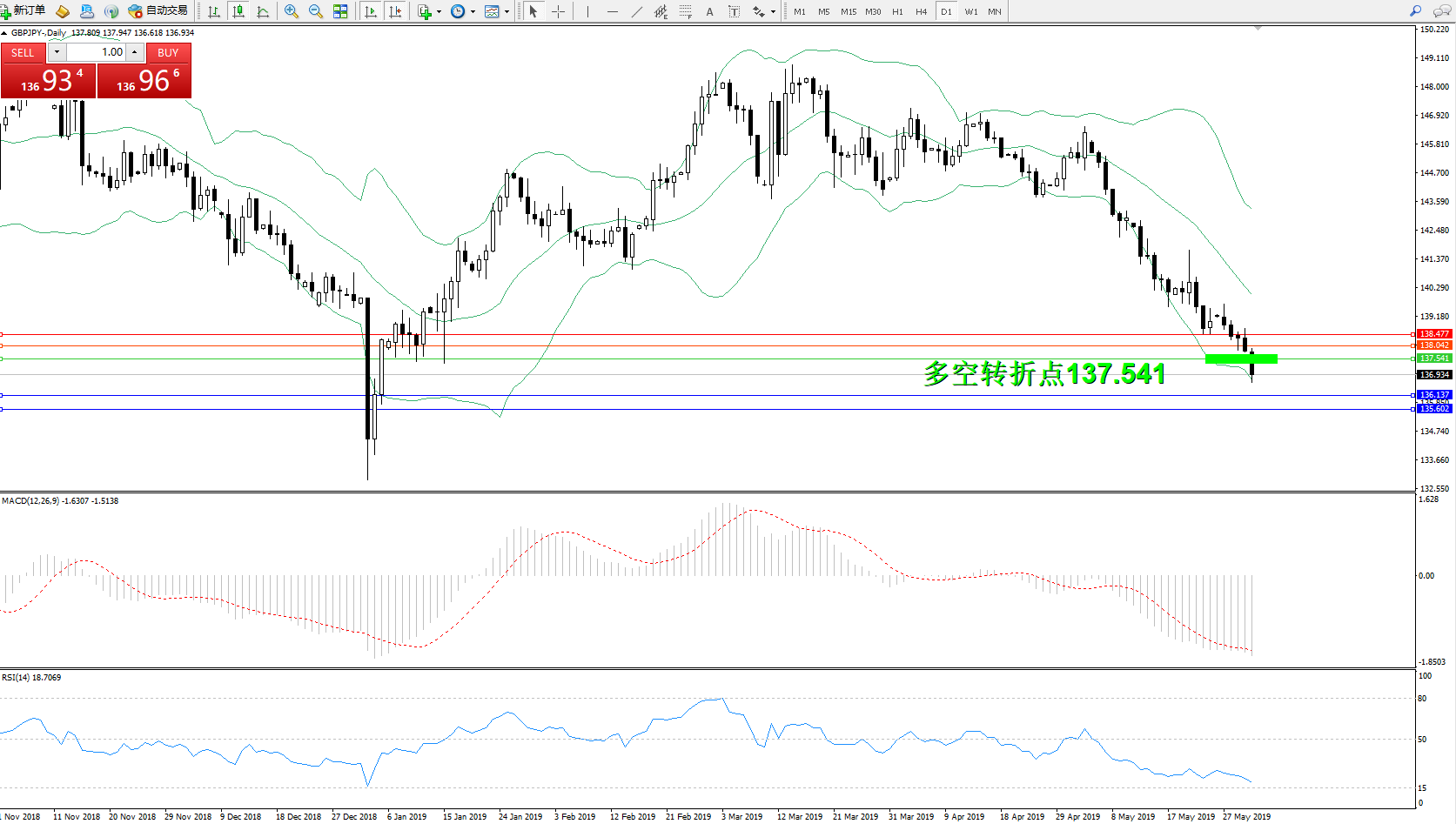 交易策略:137.541下方看跌,目标136.137、135.602