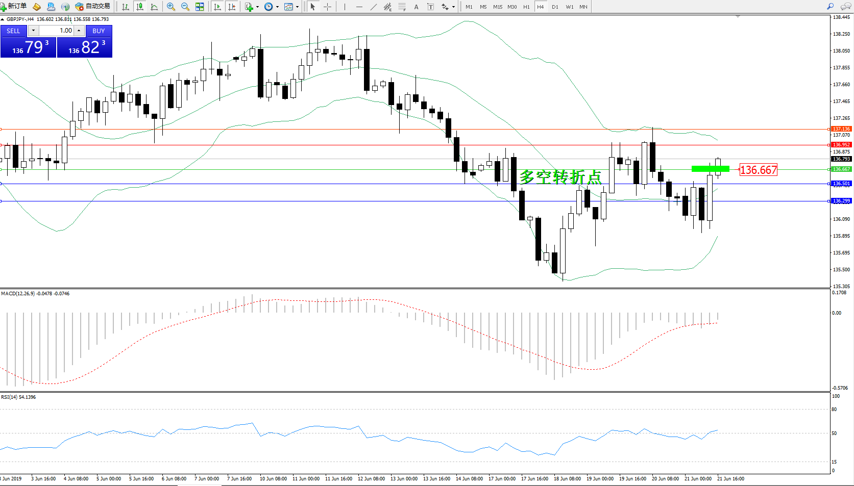 交易策略:136.667上方看涨,目标136.952、137.136
