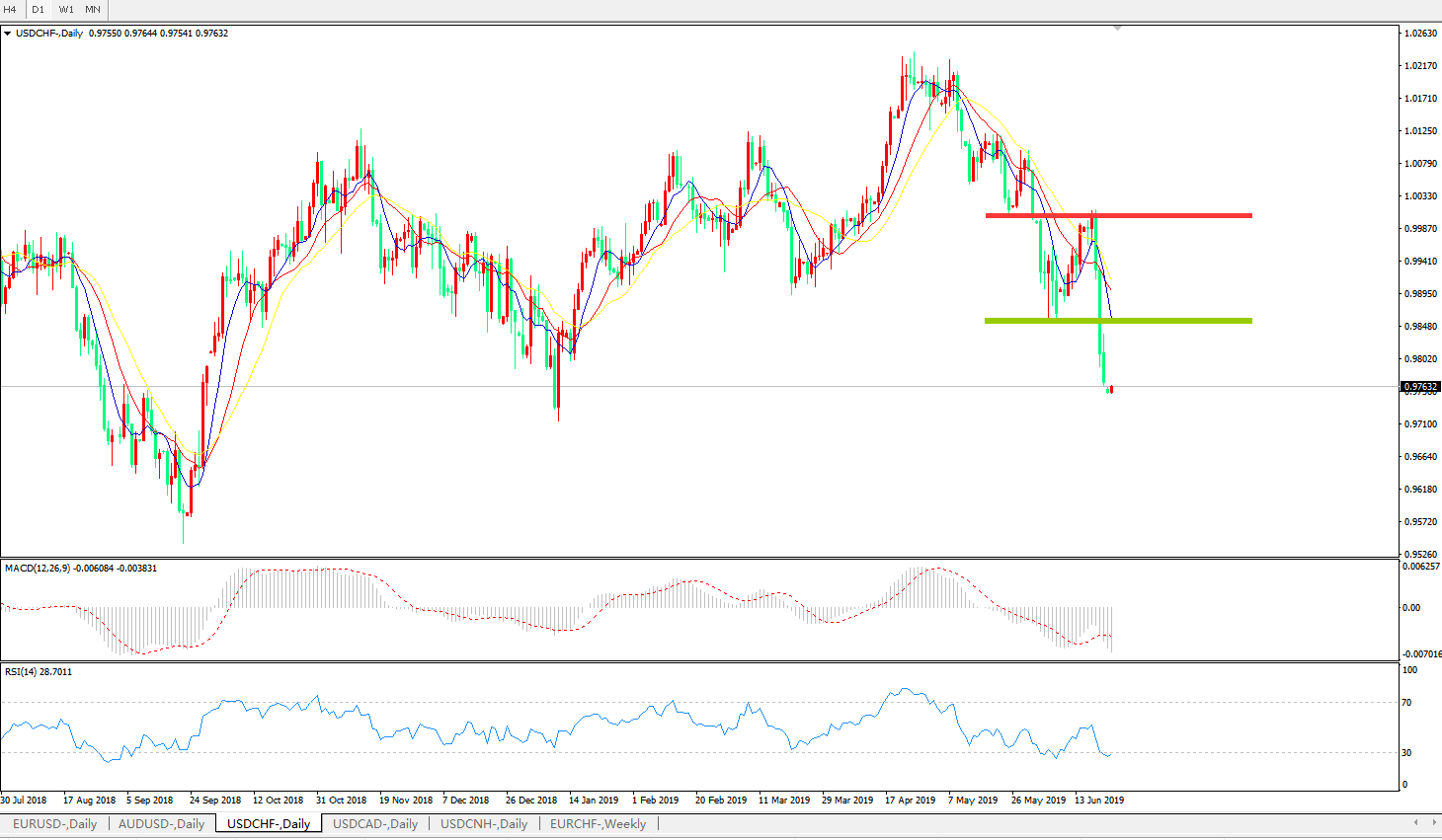 美元兑瑞郎USDCHF 日线图: