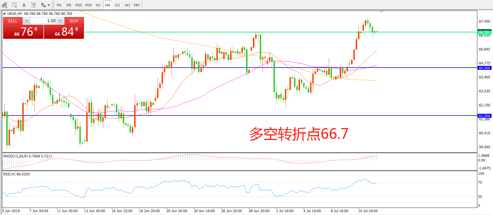 交易策略:在66.70之上看涨,目标70.00    73.00