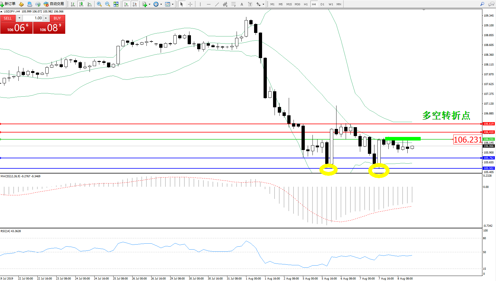 交易策略:106.231下方看跌,目标105.762105.502