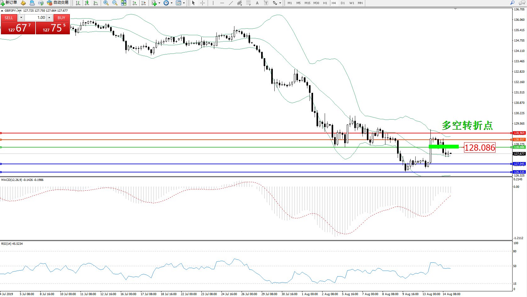 交易策略:128.086下方看跌,目标127.045、126.535