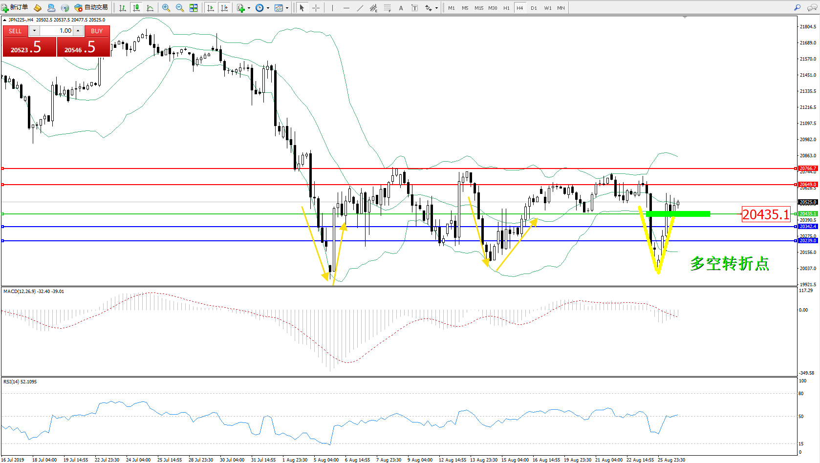 日经指数JPN225——4小时K线图: