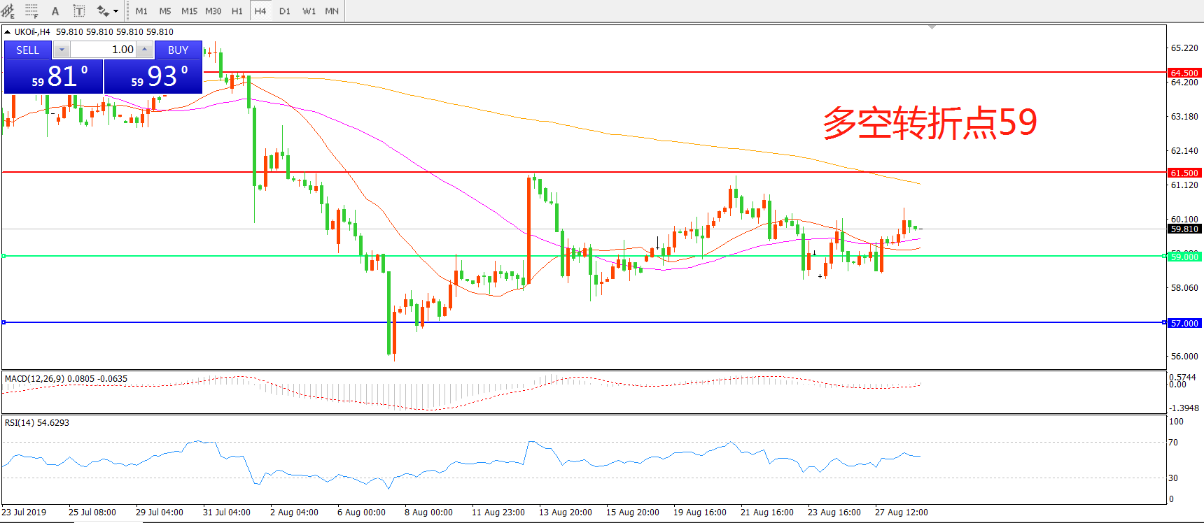 交易策略:在59.00之上看涨,目标61.50 64.50