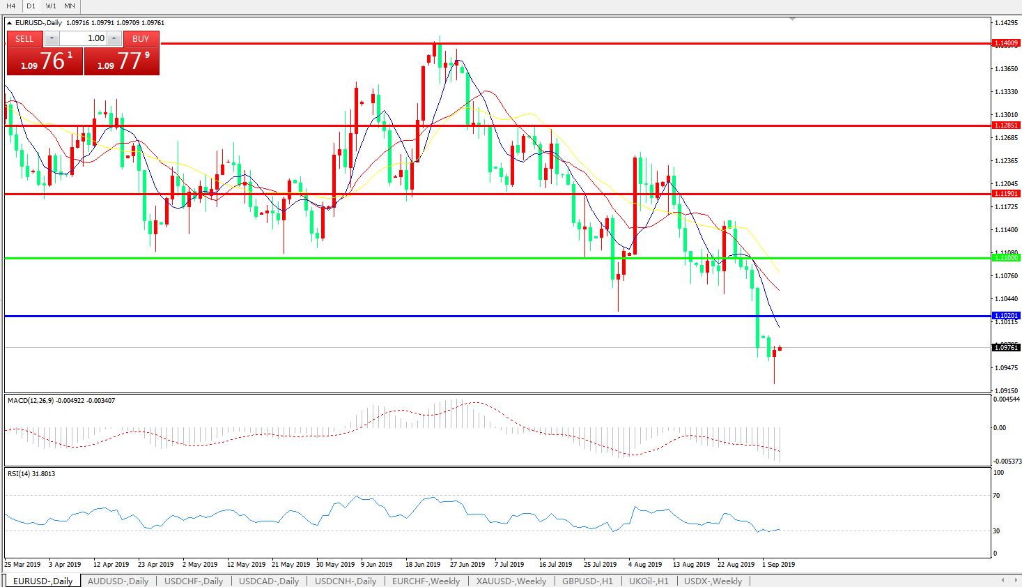 欧元兑美元EURUSD   日线: