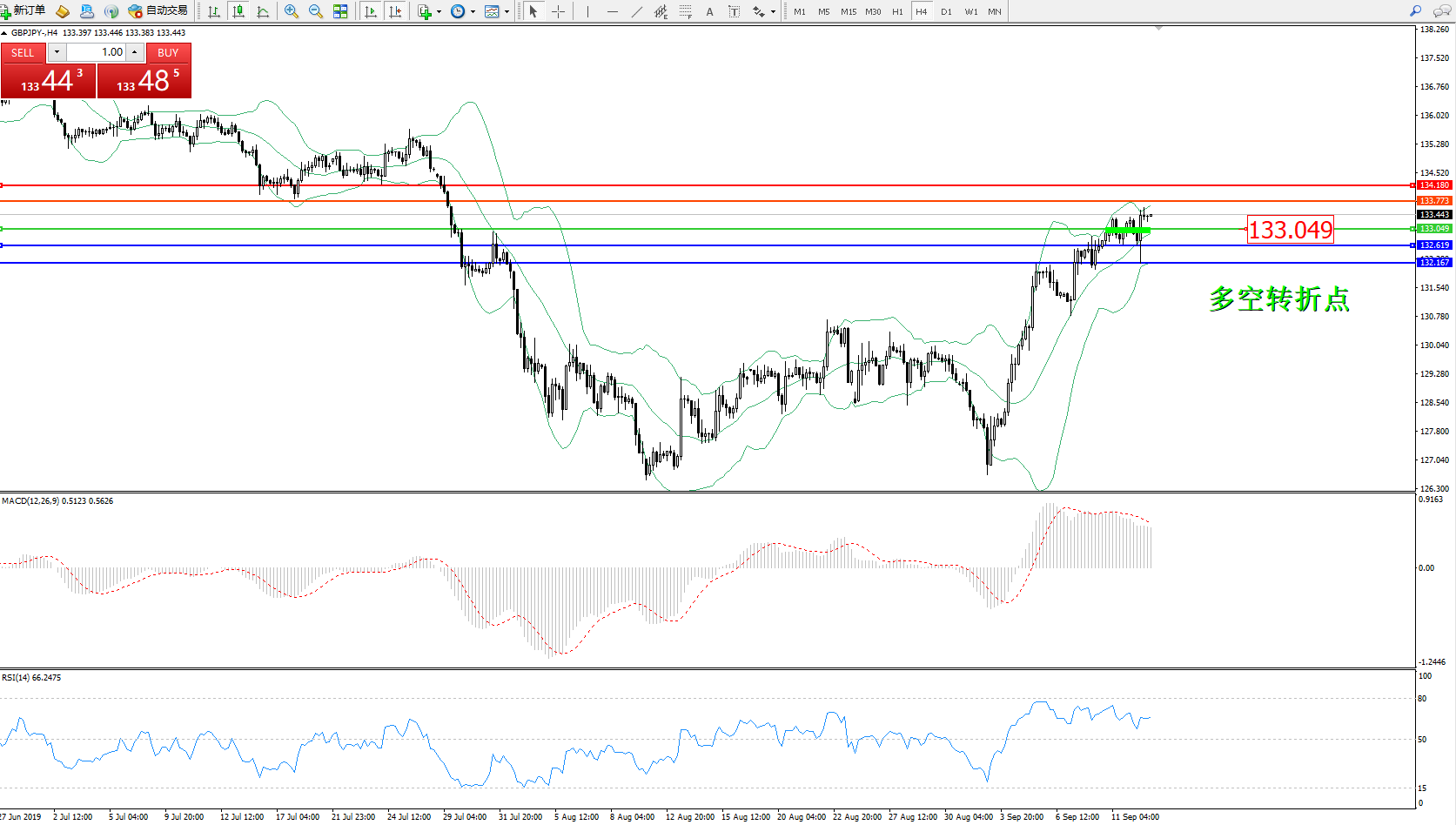 交易策略:133.049上方看涨,目标133.773134.180