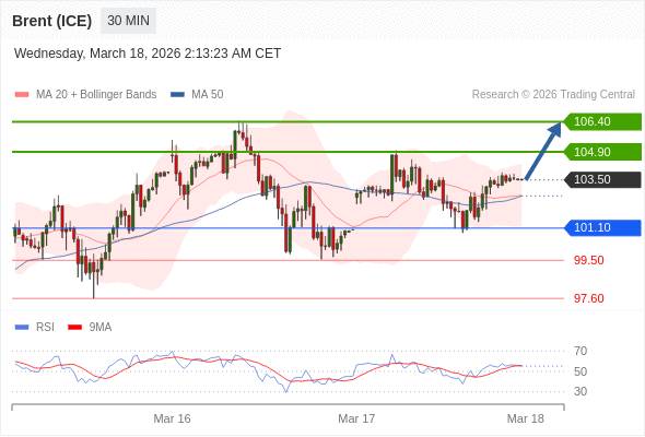 布伦特原油 (ICE) (K6) 当日内: 在101.10之上,看涨。