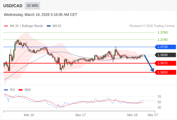 在 1.3720 之下,看跌,目标价位为 1.3675 ,然后为 1.3650 。
