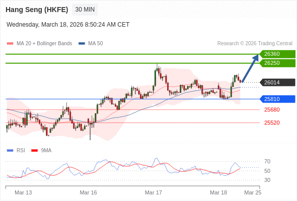 在 25810 之上,看涨,目标价位为 26250 ,然后为 26360 。
