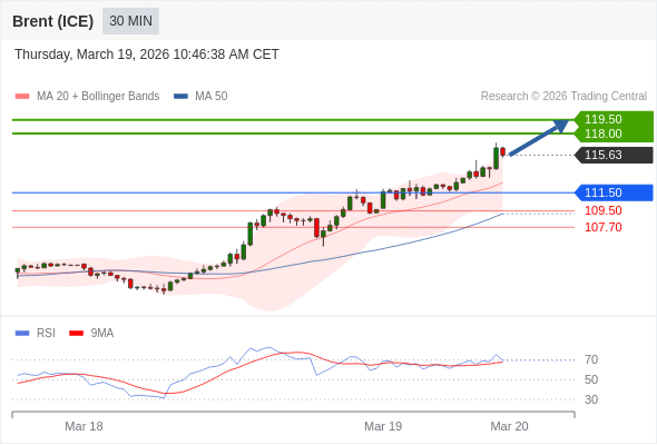 在 111.50 之上,看涨,目标价位为 118.00 ,然后为 119.50 。