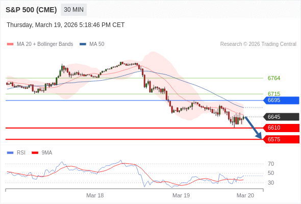 在 6695 之下,看跌,目标价位为 6610 ,然后为 6575 。