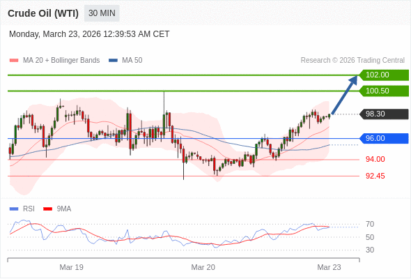 交易策略: 在 96.00 之上,看涨,目标价位为 100.50 ,然后为 102.00 。