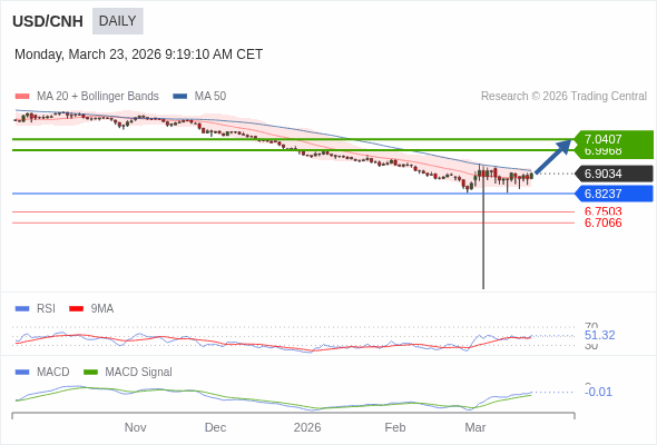 美元/人民币 短线 : 看涨。