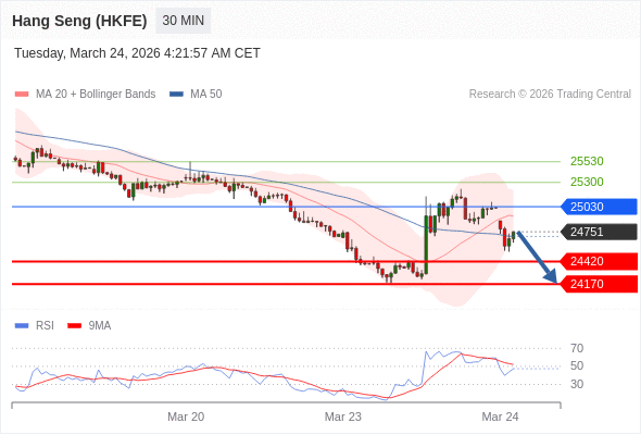 在 25030 之下,看跌,目标价位为 24420 ,然后为 24170 。