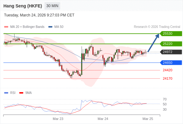 在 24650 之上,看涨,目标价位为 25220 ,然后为 25530 。