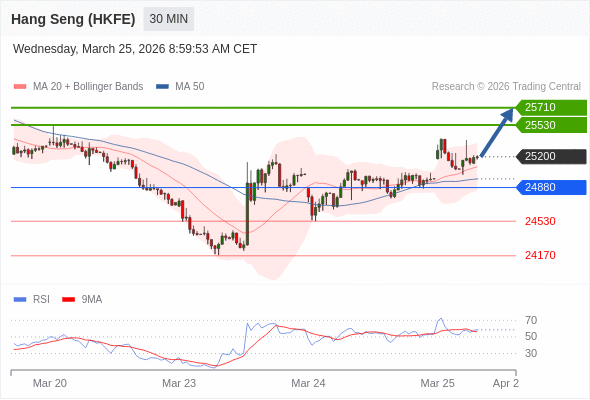 在 24880 之上,看涨,目标价位为 25530 ,然后为 25710 。