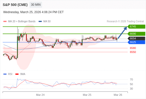 在 6625 之上,看涨,目标价位为 6690 ,然后为 6745 。