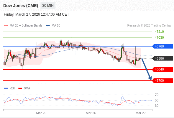 在 46760 之下,看跌,目标价位为 46040 ,然后为 45700 。