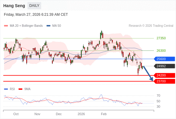 恒生指数 短线: 短期关键阻力位在25600。