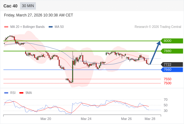 Cac 40 当日内: 谨慎操作。