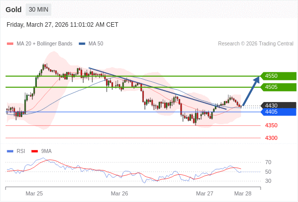 在 4405 之上,看涨,目标价位为 4505 ,然后为 4550 。