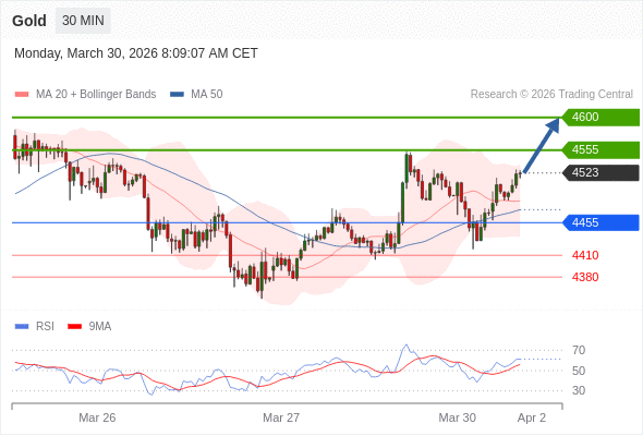 在 4455 之上,看涨,目标价位为 4555 ,然后为 4600 。