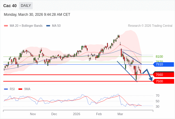 在 7910 之下,看跌,目标价位为 7660 ,然后为 7500 。