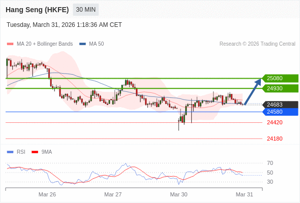 在 24580 之上,看涨,目标价位为 24930 ,然后为 25080 。