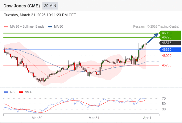 在 46320 之上,看涨,目标价位为 46790 ,然后为 46950 。