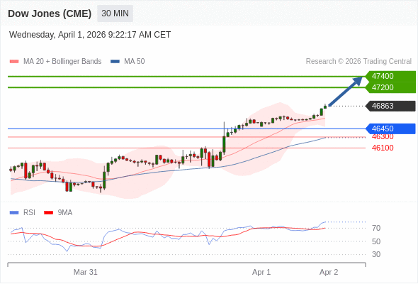 在 46450 之上,看涨,目标价位为 47200 ,然后为 47400 。
