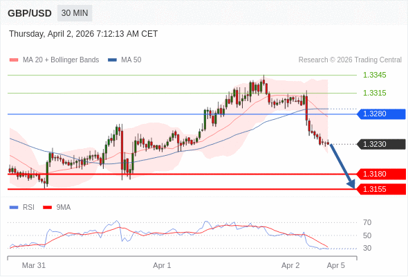 交易策略: 在 1.3280 之下,看跌,目标价位为 1.3180 ,然后为 1.3155 。