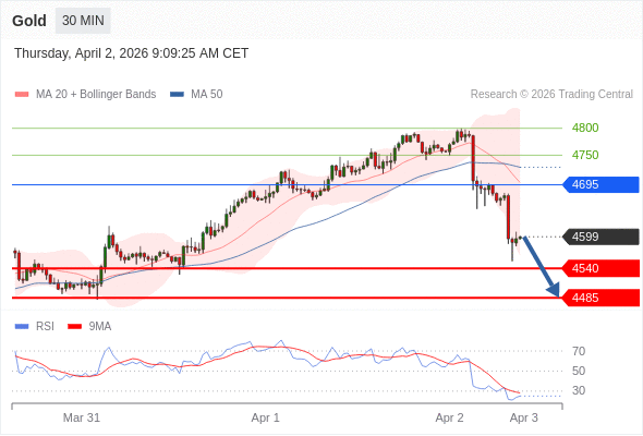 在 4695 之下,看跌,目标价位为 4540 ,然后为 4485 。