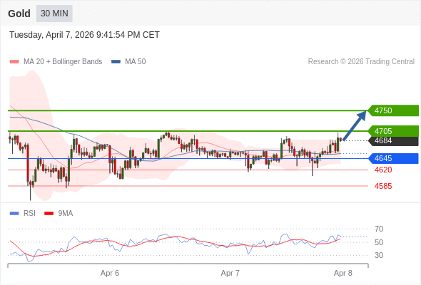 在 4645 之上,看涨,目标价位为 4705 ,然后为 4750 。