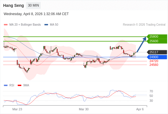 在 24900 之上,看涨,目标价位为 25600 ,然后为 25800 。