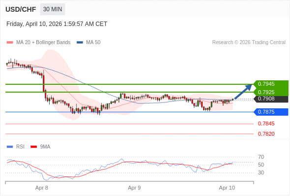 在 0.7875 之上,看涨,目标价位为 0.7925 ,然后为 0.7945 。