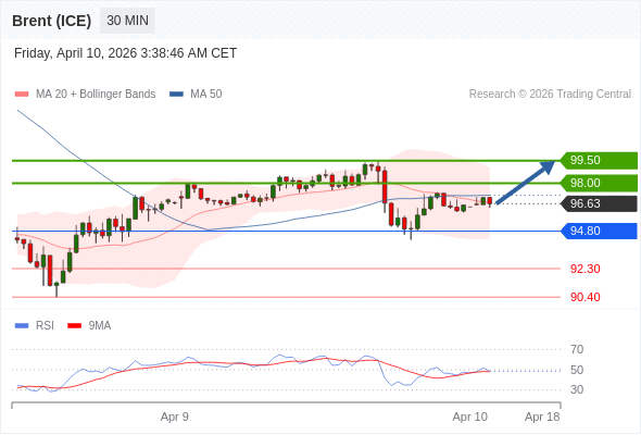 在 94.80 之上,看涨,目标价位为 98.00 ,然后为 99.50 。