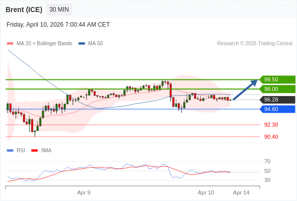 布伦特原油 (ICE) (M6) 当日内: 在94.80之上,看涨。