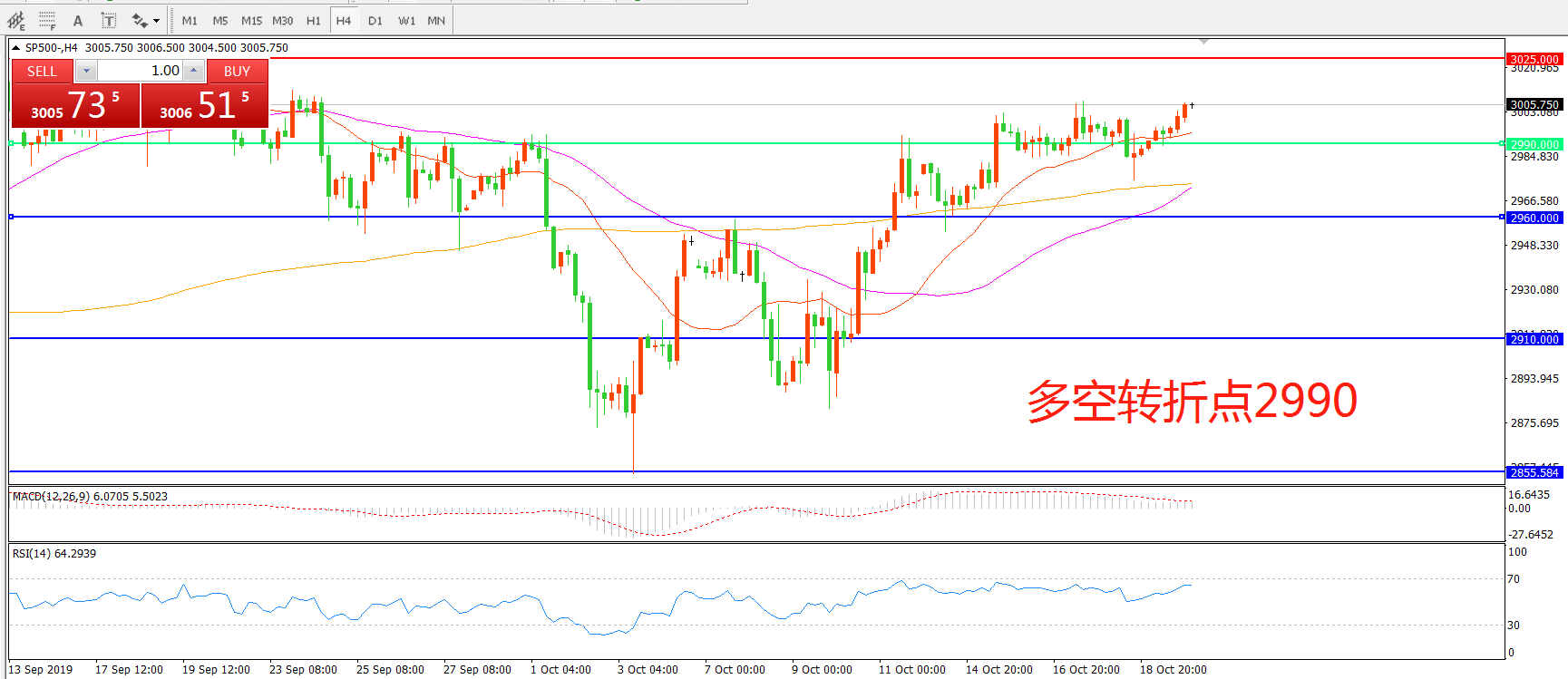 多空转折点:2990.00