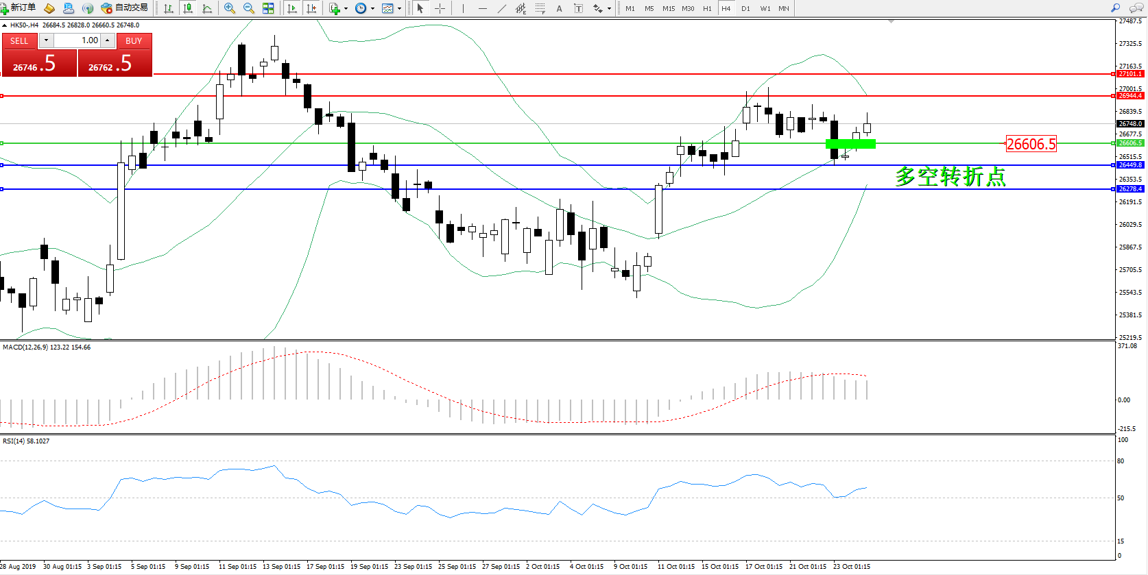 香港恒生指数1024日(周四)收盘上涨231.22点,涨幅0.87%,报26797.95点;港股早上高开84点后,曾收窄至仅升25点,恒指低见26593。随后虽曾跟A股反弹造好,但成交淡静。英国迅速有序脱欧的前景受到质疑。政治不确定性趋增,或促使投资者避险情绪增加。此外,中美双方“首阶段”贸易协定有望达成,局势稳步缓和,但市场对全球经济仍感忧虑。
