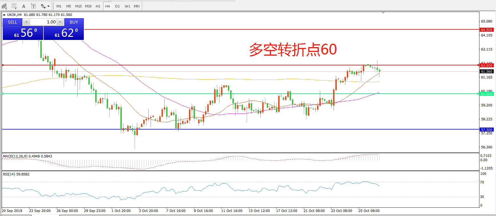 多空转折点:60.00