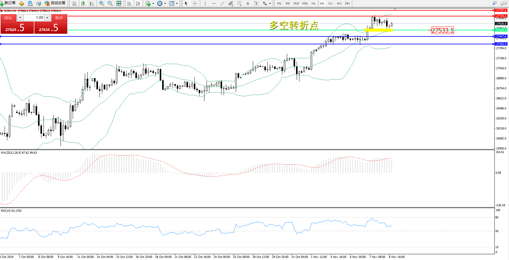 技术点评:多头动力不断在延续布林带指标中上轨区间震荡上行中,高位短暂回撤至中轨附近受支持后再次有上移迹象,且布林带指标呈收口走势中,MACD指标多头区域高位维持整理中,RSI指标处于多头区域高位震荡回撤后开始走平;