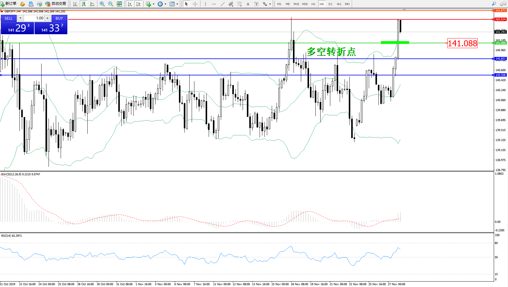备选策略:141.088下方看跌,目标140.803140.508