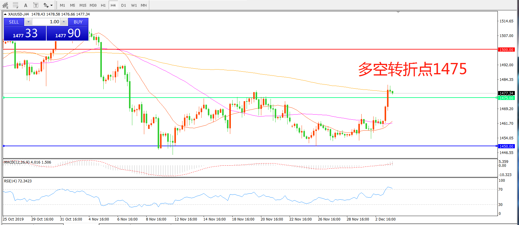 交易策略:在1475.00之上看涨,目标1500.00   1530.00