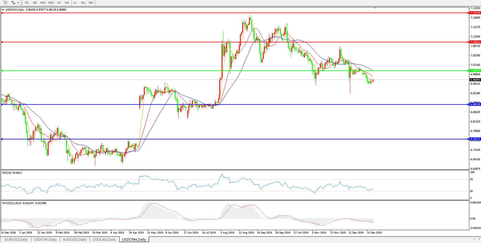 交易策略: 在7.0000之下,看跌,目标价位为6.8820,然后为6.7600。