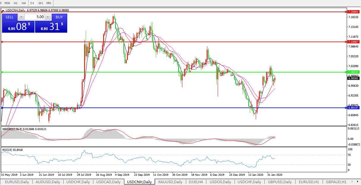 交易策略: 在7.0000之下,看跌,目标价位为6.8820,然后为6.7600。