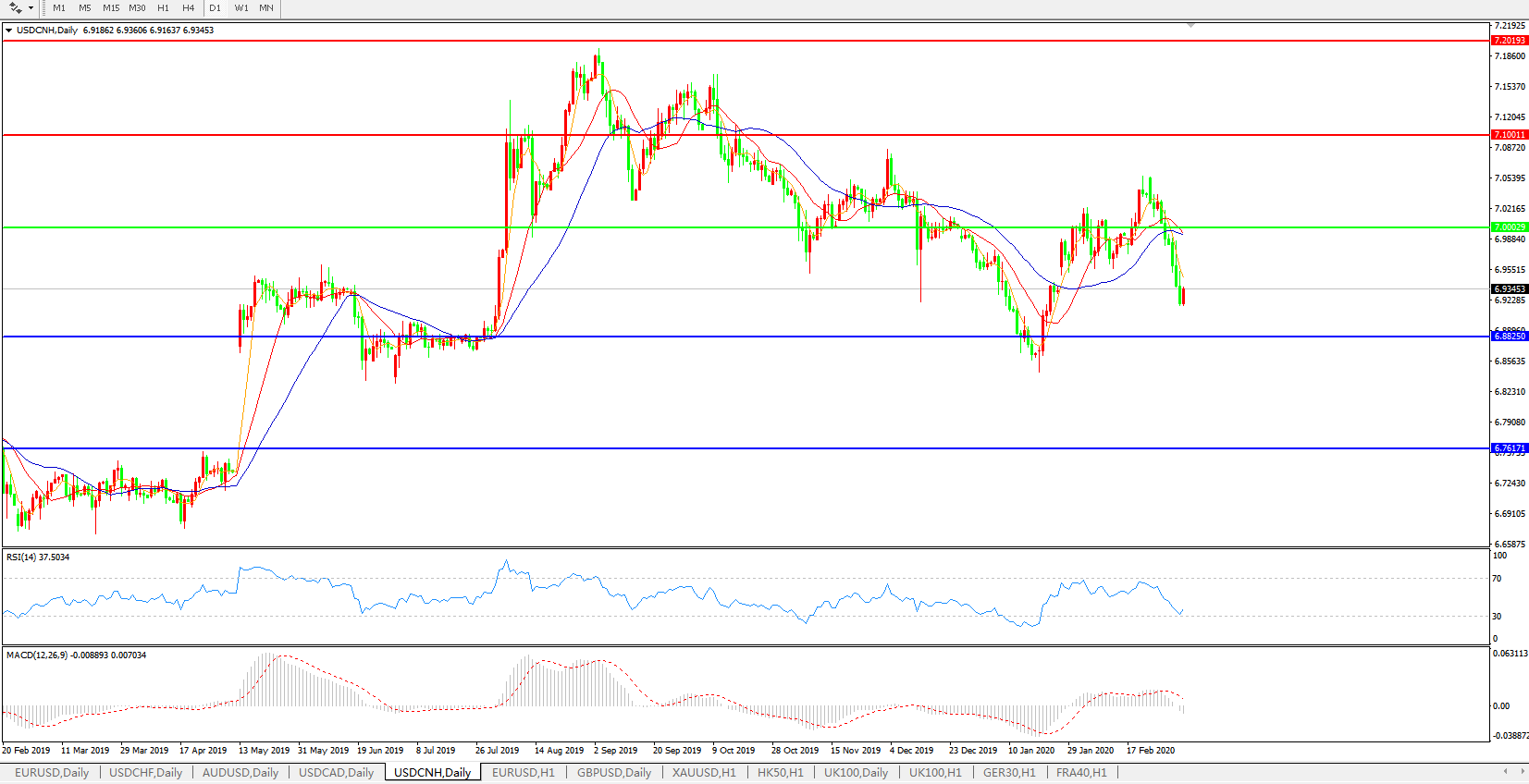 美元兑人民币USDCNH 日线图: