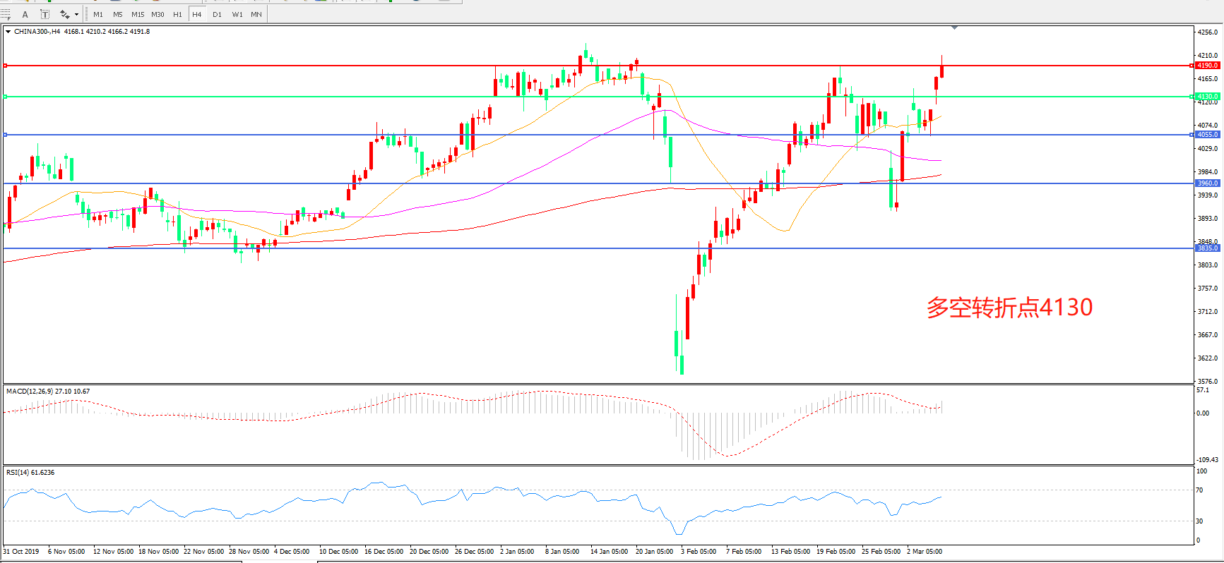 多空转折点:4130.00